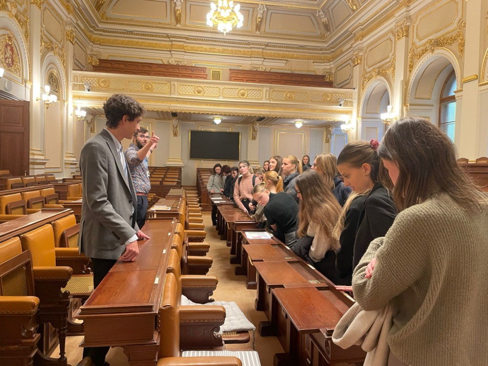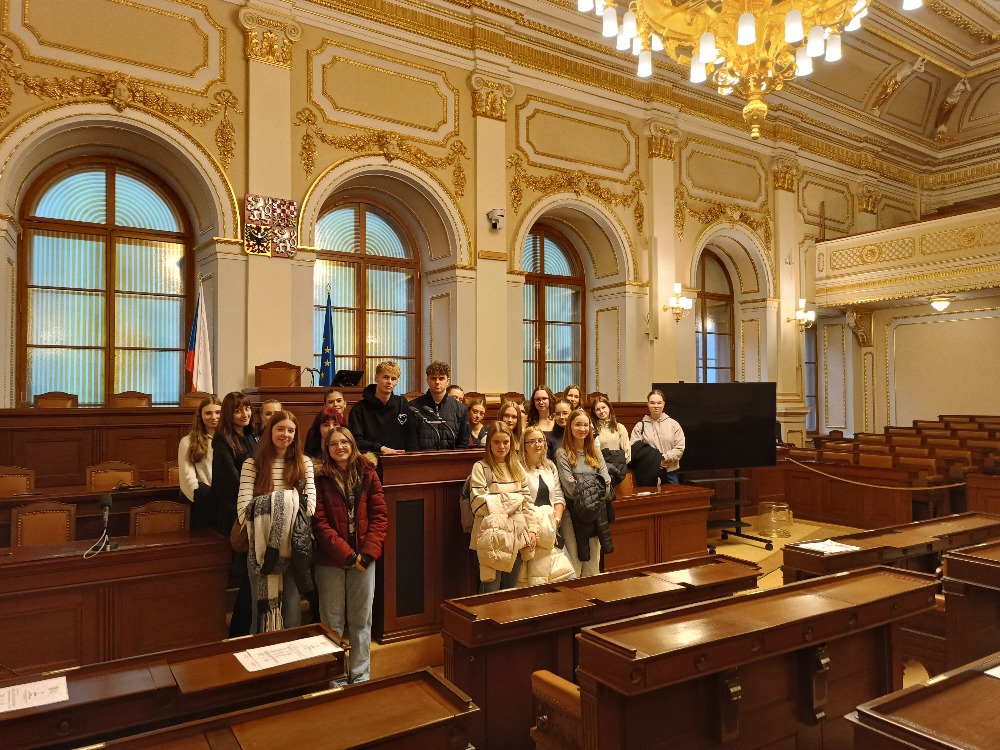 První prosincový den se třídy 2. ZL a 3. ZL vydaly na společnou exkurzi do Prahy. Program byl opravdu pestrý – hlavním cílem byla návštěva Poslanecké sněmovny Parlamentu České republiky, kterou žáci mohli poznat nejen jako významnou politickou instituci, ale také jako místo s bohatou historií a zajímavou architekturou. Během komentované prohlídky se dozvěděli, jak probíhá legislativní proces, nahlédli do některých jednacích prostor a získali představu o každodenní práci poslanců.