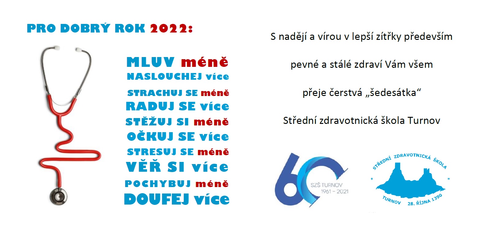 Děkujeme všem svým sociálním partnerům za trvalou přízeň a věříme v pokračující výbornou spolupráci při výchově a vzdělávání budoucích zdravotnických a sociálních pracovníků i v následujícím roce 2022.