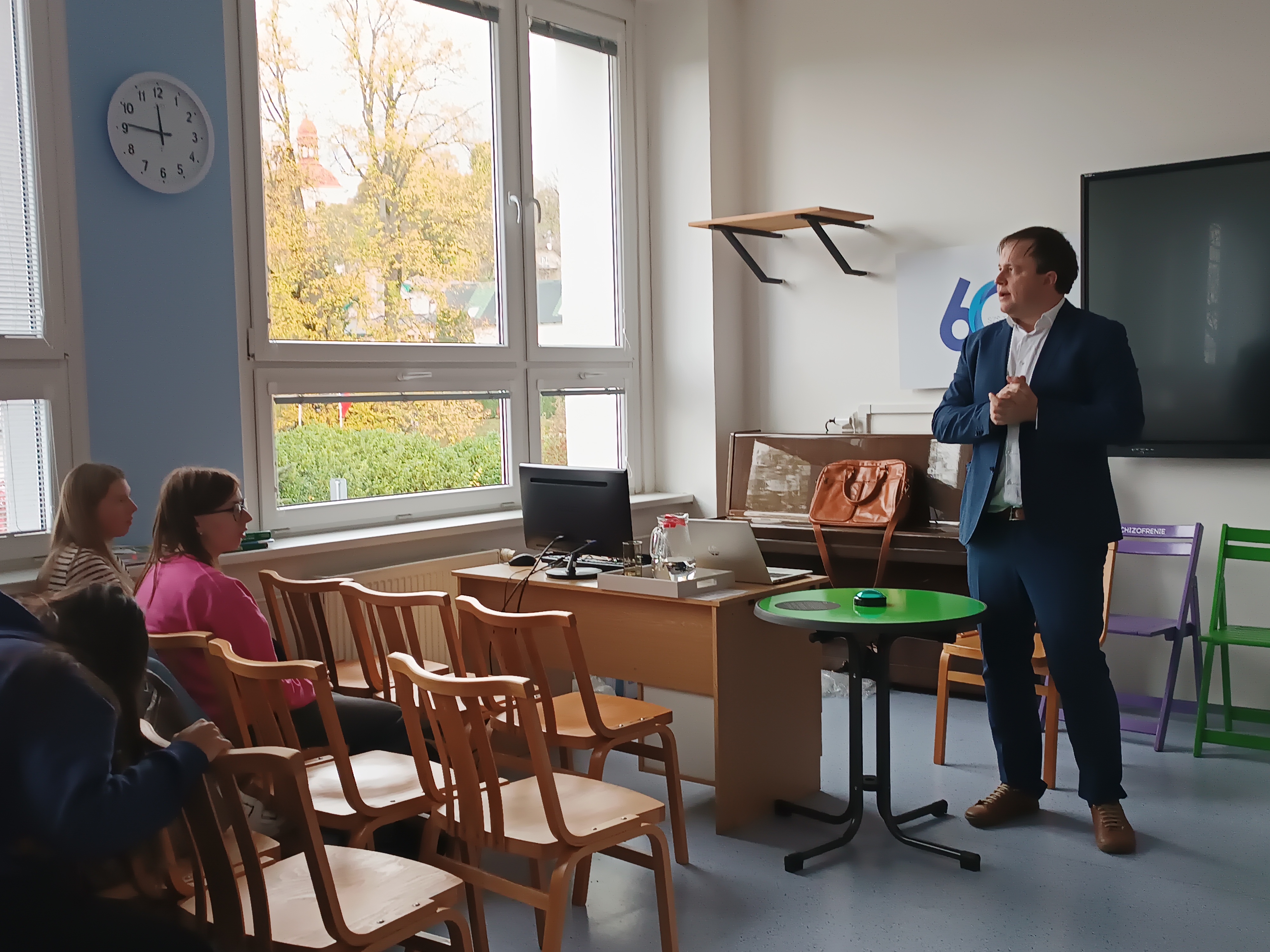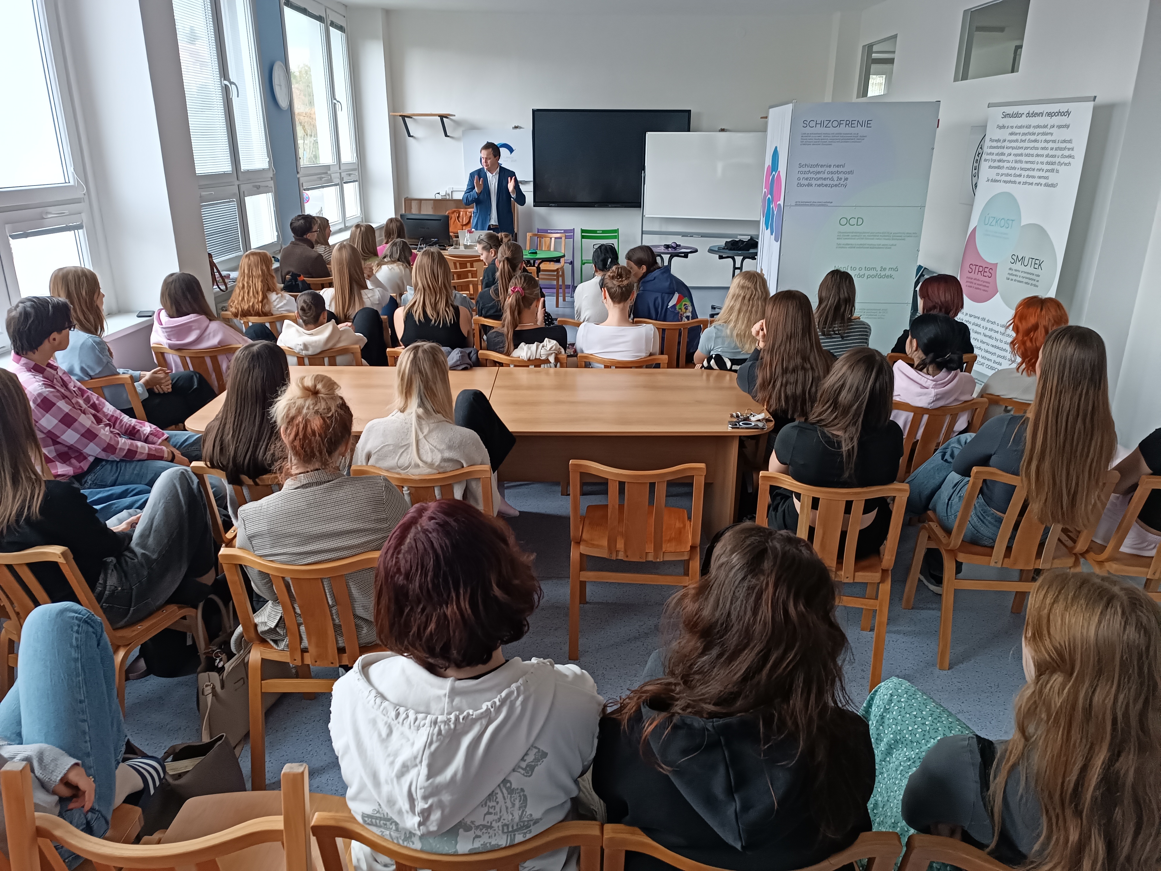 V pátek 24. 10. do naší školy zavítal advokát JUDr. Petr Holubička, aby s žáky 3. ZL a 4. ZL absolvoval besedu na témata, která se jich momentálně nejvíc týkají. Finanční gramotnost a dluhové pasti, zodpovědné chování v sexuální oblasti, možné důsledky užívání návykových látek. Na závěr jsme se dostali až k tématu hudby, jelikož pan doktor je členem kapely, která nám zahraje na jednom z blížících se plesů.