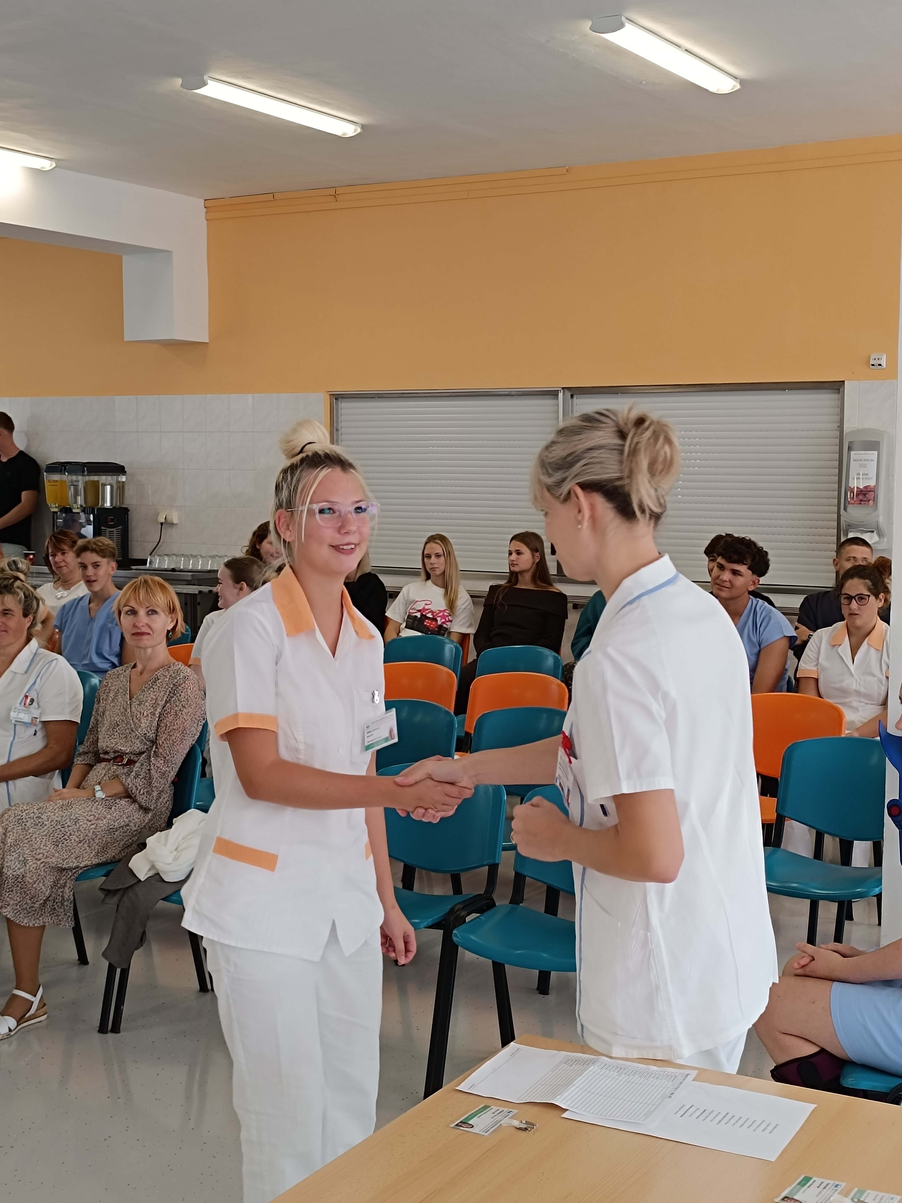 Ve středu 24. 9. se konalo v jídelně slavnostní zahájení praxe třetího ročníku oborů Masér ve zdravotnictví a Sociální činnost.