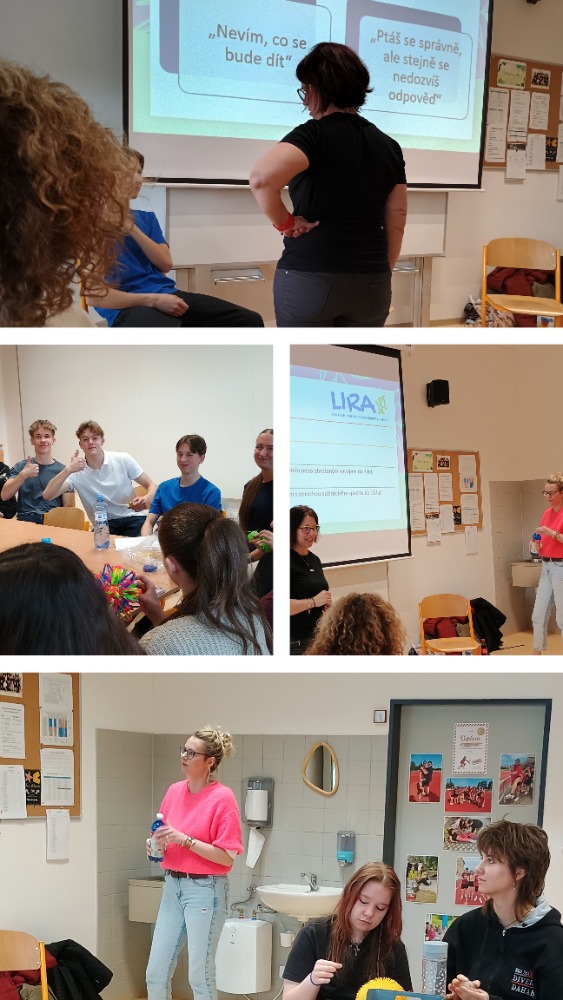 Ve čtvrtek 26. 3. 2026 nás navštívily Bc. K. Jírová, ředitelka Centra Lira z.ú., a Mgr. J. Korbelářová, poradkyně rané péče, a během dvouhodinového workshopu přiblížily žákům třídy 3.MASČ v rámci hodin psychologie a komunikace náročnost komunikace a péče o děti s poruchou autistického spektra. Žáci mohli prožitkovou formou zjistit, jak je těžké u takového dítěte navázat kontakt a vykomunikovat s ním, co ho např. bolí. Zkusili si i zrakový handicap, při kterém měli určit daný symbol, který zjišťovali hmatovým smyslem. Příklady činnosti, resp. komplexní podpory rodinám s dětmi s PAS, kterou se tato organizace zabývá, budou žákům velmi přínosné právě při učení se komunikaci s handicapovanými pacienty a klienty.